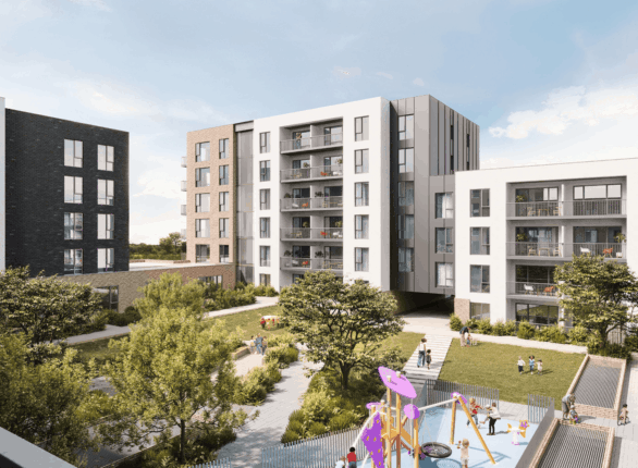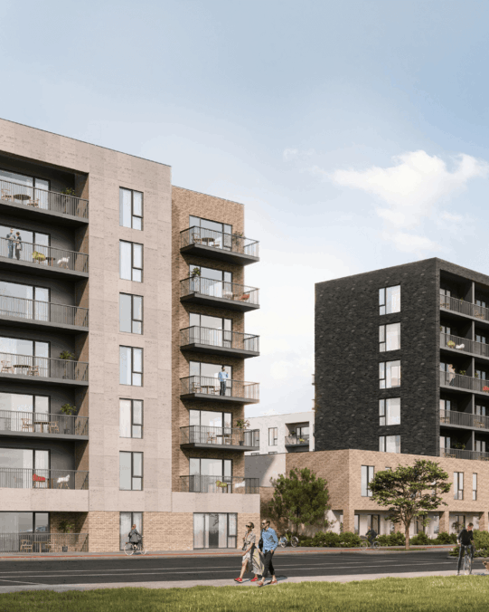 Die Gebäude wurden so gestaltet, dass sie in der Höhe von zwei bis sieben Stockwerken über das Gelände reichen, neben zwei großzügig proportionierten Gemeinschaftshöfen, die zukünftige Bewohner genießen können.