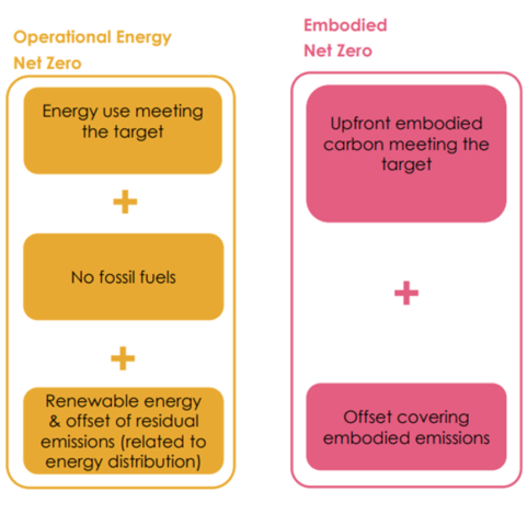 Embodied carbon should also be considered, with priority given to reused and low carbon materials and following circular economy principles. When operational and embodied carbon are considered together, this is known as whole life carbon.