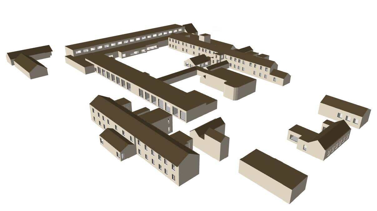 undertake detailed environmental modelling, options appraisal and technical design development to define a phased, technically robust decarbonisation strategy for Clonakilty Community Hospital (CCH). A calibrated dynamic simulation model, validated against 2016–2018 utility data, was developed to establish a defensible carbon and energy baseline which is predicted to achieve a 50% improvement in energy efficiency, a 50% reduction in carbon emissions, attainment of a B2 BER, and a defined pathway to net zero in line with CAP2030 and CAP2050.