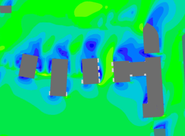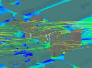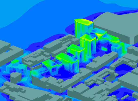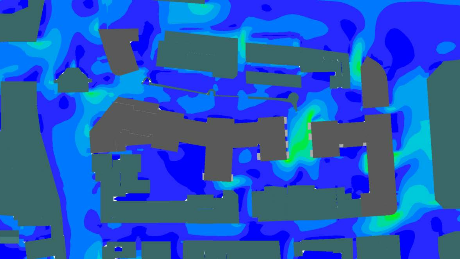 A equipe de física de construção da IN2 realizou uma extensa análise de vento usando software CFD sofisticado para analisar os efeitos de vento previstos ao redor do novo edifício e do local mais amplo. A análise determinou regiões de pressões positivas e negativas, com velocidades de ar microclimáticas associadas, variando velocidades e direções do vento em todo o desenvolvimento. A análise de pedestres foi realizada para examinar o conforto previsto dos pedestres devido ao vento, com base nas características atuais de design do desenvolvimento. A IN2 utilizou os “Critérios de Lawson” para determinar as condições ao nível do solo, espaço de lazer e varandas.