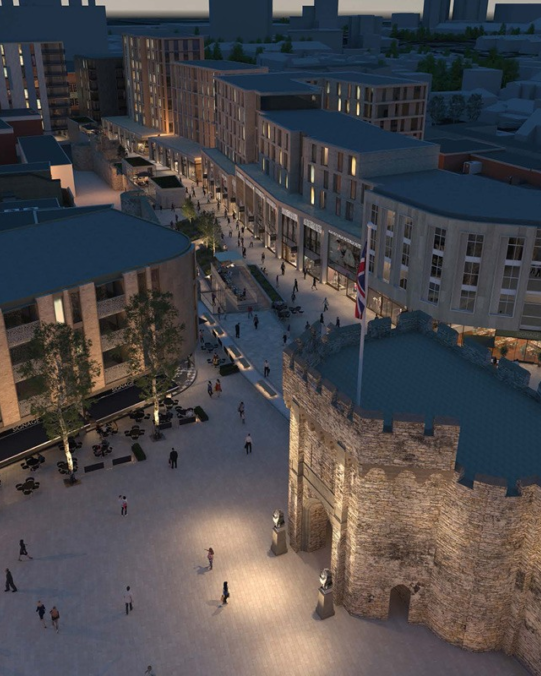Junto com novas casas para atender às crescentes necessidades locais, o esquema incluirá melhorias significativas no espaço público e um novo parque linear. Ele substitui as propostas anteriores para o local, que eram impulsionadas por habitações estudantis e uma quantidade significativa de espaço comercial. Dado que a forma como as pessoas vivem, trabalham, socializam e fazem compras está mudando drasticamente, o objetivo de nosso cliente era apresentar uma nova visão que responda a este novo ambiente.